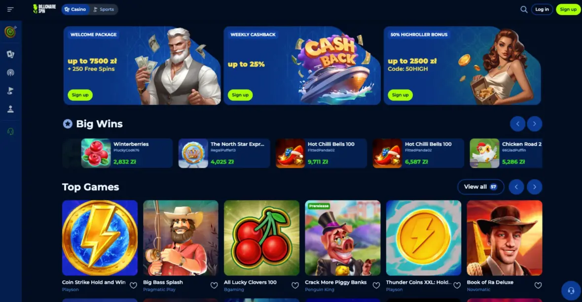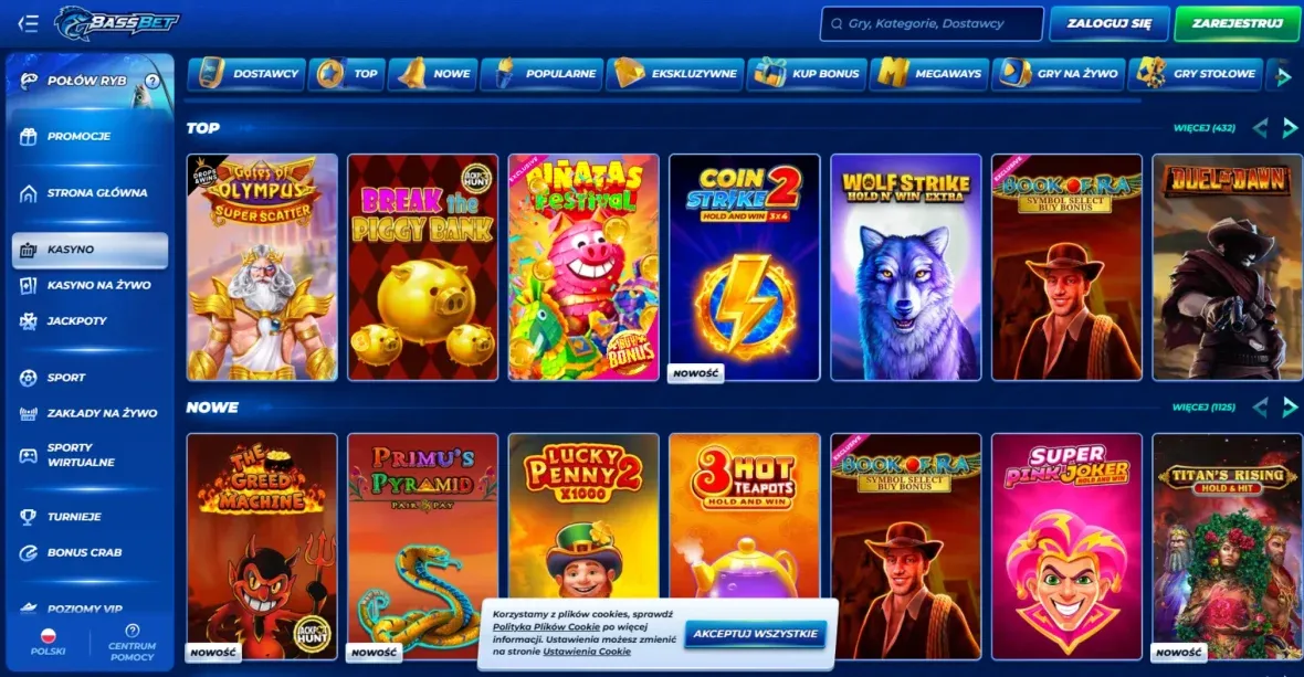 - Szeroka biblioteka gier: Ponad 3 000 tytułów od Pragmatic Play, Evolution, Play'n GO.