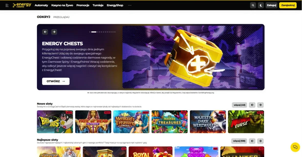 Energy Casino ma licencję MGA. Malta Gaming Authority to jeden z najtwardszych regulatorów w Europie, znacznie trudniejszy do uzyskania niż Curacao. Cotygodniowe turnieje Pragmatic Drops & Wins, darmowe spiny co tydzień, ponad 2 500 gier w bibliotece. Wśród polskich kasyn online z aktywnym programem promocyjnym Energy Casino nie ma sobie równych. Wypłaty przez e-portfele w 30 do 90 minut.