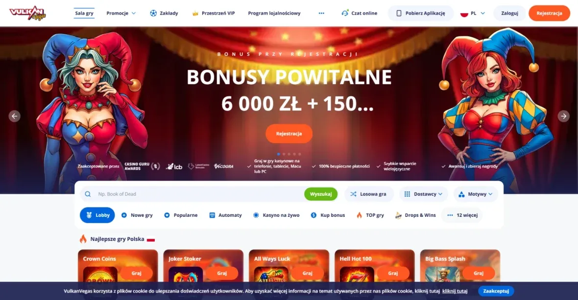Vulkan Vegas to marka, którą Polacy znają od lat. Ponad 3 500 automatów, ruletka, kości, jackpoty od Microgaming. Rejestracja i panel gracza dostępne w języku polskim. Bonus powitalny należy do jednych z najwyższych spośród wszystkich kasyn internetowych Polska. Gonzo's Quest od NetEnt działa tu płynnie na każdym urządzeniu. Mobilna wersja strony nie odstaje od desktopa.